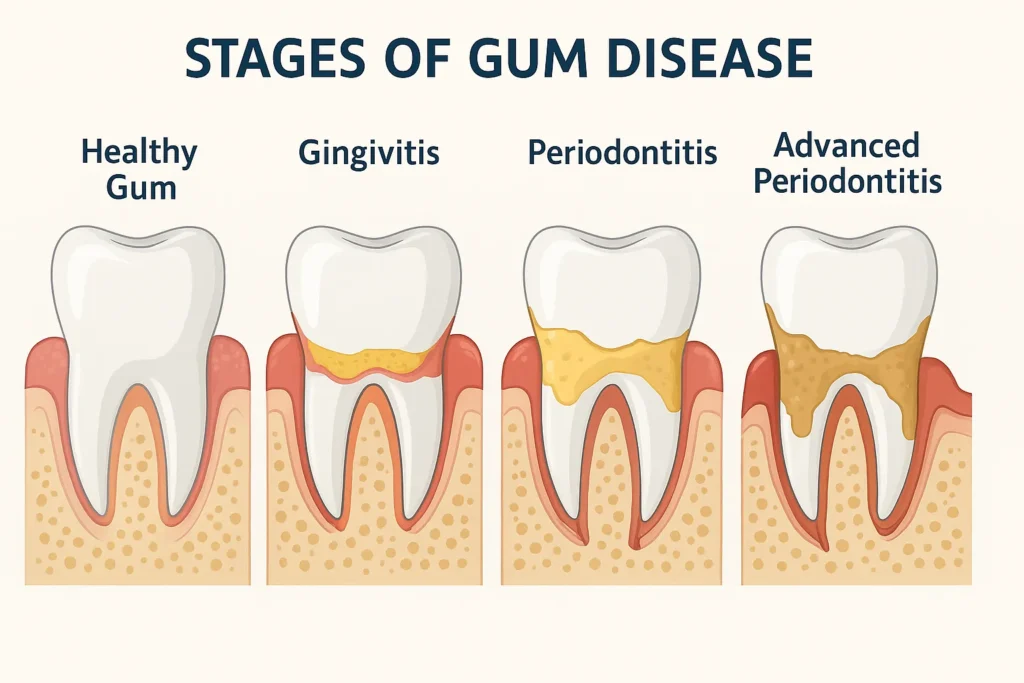 Discover what gum disease is, how it begins, and why early treatment is essential. This comprehensive guide explains causes, symptoms, stages, and treatment options for gingivitis and periodontitis. You’ll also learn simple daily habits to prevent gum disease and keep your smile healthy. Ideal for patients looking to stay proactive about their oral health.